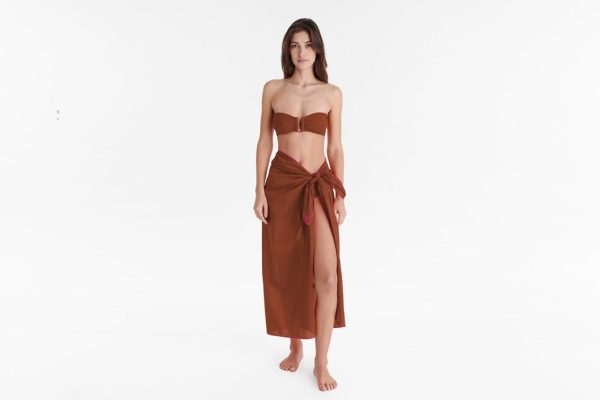 Elevate your beach style with the exquisite Cabine sarong, available in this season’s most sought-after color palette. Crafted from premium lightweight cotton voile, this elegant wrap features a sophisticated contrasting border and the distinctive ERES logo in luxurious Peau Douce fabric, creating a perfect blend of casual chic and refined elegance.