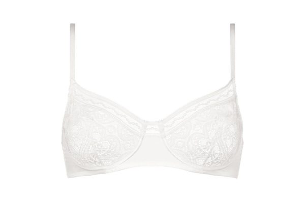 Experience exquisite elegance with the Etincelle demi-cup bra, featuring beautiful jacquard lace with a delicate heart design complemented by luxurious silk satin sides and center panel for sophisticated styling. This feminine design is enhanced with refined lace trim at the neckline and bridge for added elegance. Designed for exceptional support with underwiring and a structured basque underband for perfect shaping.