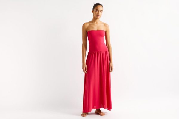 Discover the Oda long bustier dress crafted from luxurious Peau Douce* and flowing crêpe jersey that delivers the perfect balance of effortless comfort and sophisticated elegance. This versatile piece transforms beautifully into a maxi skirt when paired with your favorite swimsuit, creating a stunning evening-ready look that transitions seamlessly from beach to dinner.