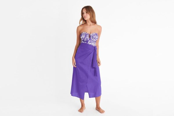 Discover the Péplum long sarong crafted from premium lightweight cotton jersey for effortless beachside elegance. This sophisticated style features a fixed belt in luxurious Peau Douce*, designed to tie securely around your waist for a flawless fit.