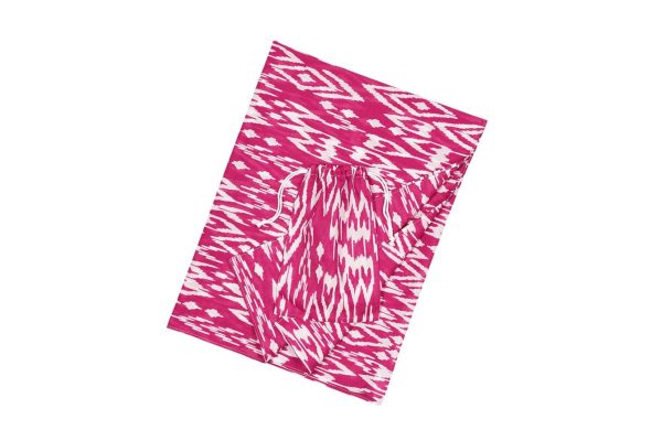 Wind Sunset showcases an exquisite ikat pattern drawing inspiration from traditional Indian textile artistry, creating a unique and sophisticated beach accessory.