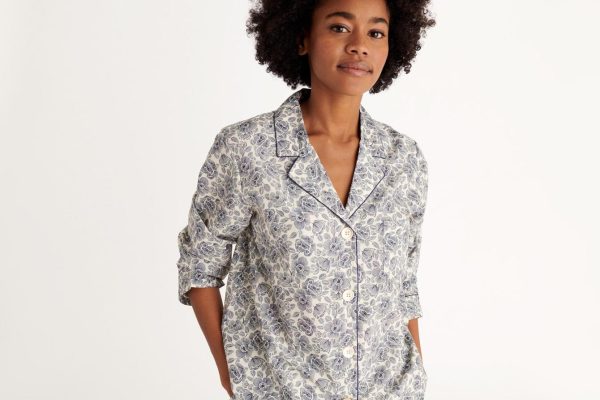 Inspired by classic toile de Jouy designs, the Coquelicot print transforms the Monogramme shirt with its timeless dark blue floral pattern set against a delicate vanilla backdrop. Crafted from exceptionally soft cotton and silk blend, this elegant shirt features sophisticated blue contrast piping for a refined finish.