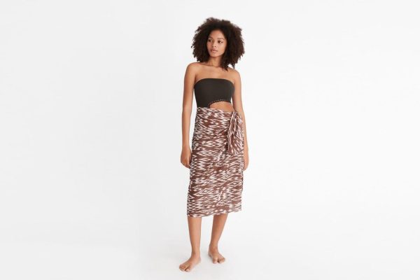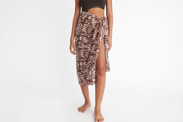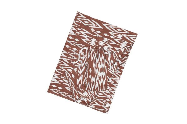 Wind Coffee presents an elegant safari-style ikat pattern that brings timeless sophistication to your beachwear collection.