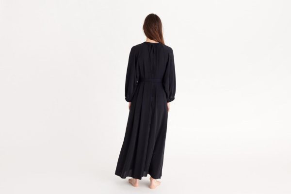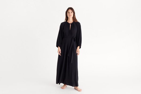 The jersey Beachwear range has grown this year to include the Adela long dress. Classic and timeless, it features long elasticated sleeves, and the slit at the neckline fastens with a press stud. The removable belt can be used to accentuate the waist as the mood takes you.