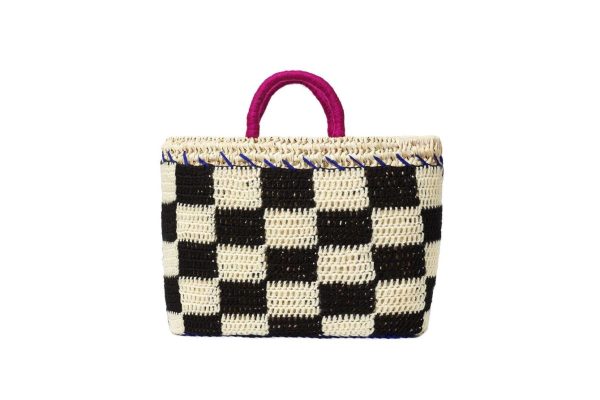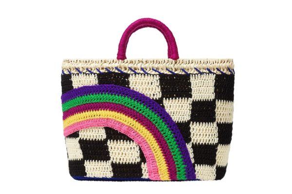 ERES has invited Kilometre Paris to curate a unique beachwear line inspired by travel and craftsmanship. Drawing on the Memphis theme and the collection’s graphic spirit, the Damier straw bag features a black and white chequerboard side and a colourful side with a contrasting rainbow. Woven and crocheted by hand, it makes the perfect accessory for your summer outfits.