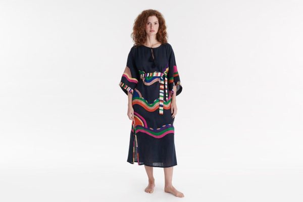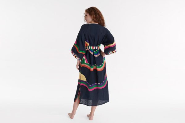 The hand-embroidered linen Horizon dress is a masterpiece: a full expression of artisanal expertise with a loose, lightweight cut for maximum comfort and a unique edge. The patterns are reminiscent of waves and sunsets, and come in a neutral or sunny palette to fit your mood, reminding us of the collection’s Kilim and Kaleido lines.