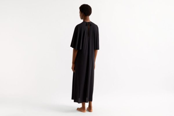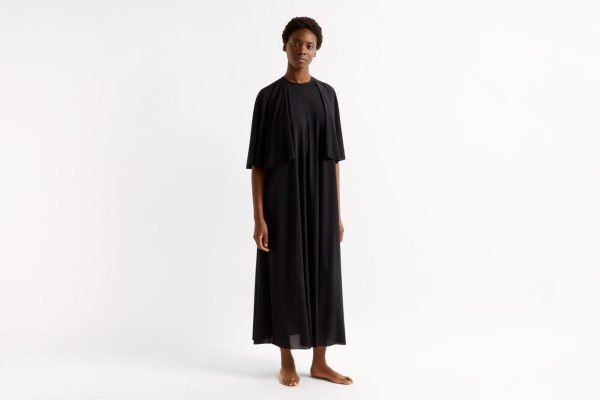 The Joan dress is the new jersey piece of the season. This long dress with butterfly sleeves and a crew neck is enhanced by a tied strip at the back. The fluidity of its material lends it incomparable practicality and comfort.