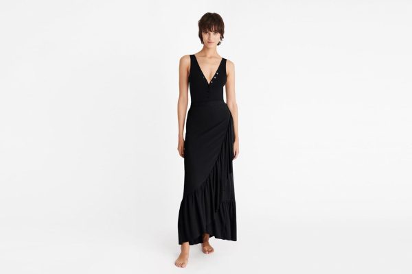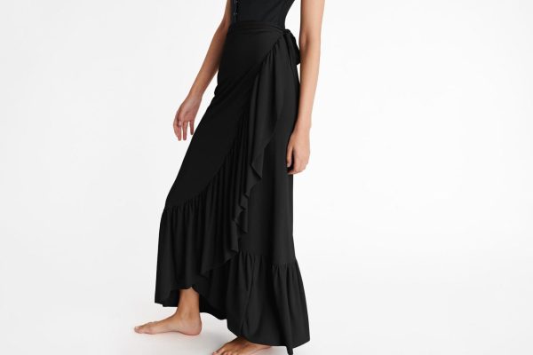 A new wardrobe essential, the Julia long sarong skirt has been added to our Jersey range this season. With its tie waist belt and ruffle details, this skirt hugs and enhances the figure.