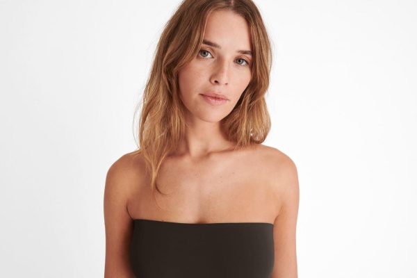 The Oda long bustier dress in Peau Douce* and flowing crêpe jersey is the perfect combination of comfort and elegance. It can also be worn as a maxi skirt, paired with a swimsuit, for an evening dress effect.