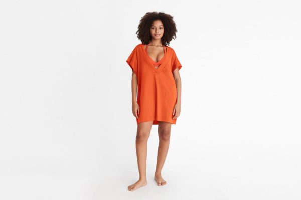 The Renée oversized T-shirt in lightweight cotton jersey has short sleeves and a V neck.