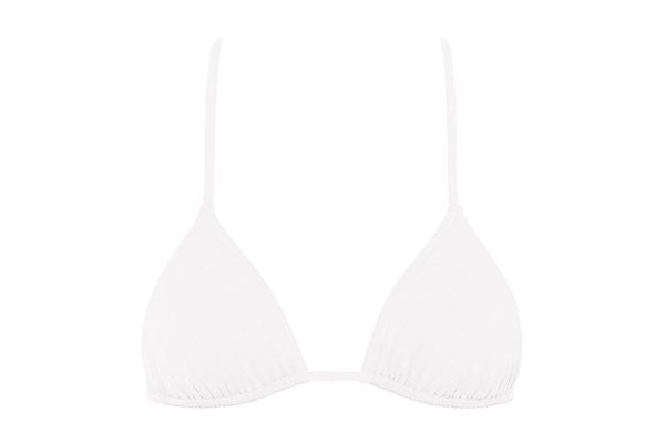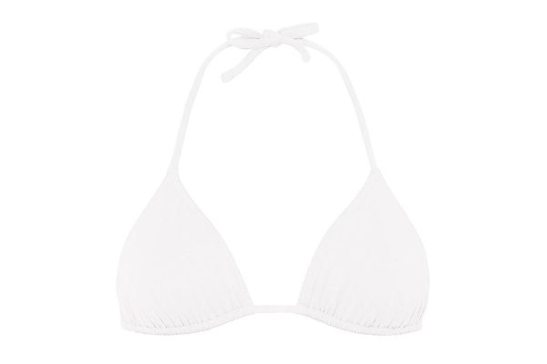 Timeless and basic, this drawstring triangle bikini top has thin straps that can be worn straight or around the neck.