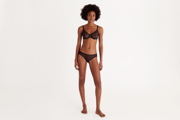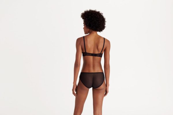 An underwired full-cup bra with bust darts, this style in iconic ERES stretch tulle offers very good support up to a D cup. The straps are adjusted at the front.