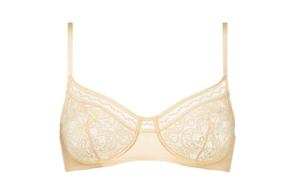 The Etincelle demi-cup bra is a gorgeous combination of jacquard lace with a heart design, and soft silk satin on the sides and between the cups for soaring sophistication. This feminine style is emphasised by lace trim on the front for extra refinement. This bra offers flawless support too thanks to its underwiring and basque underband.