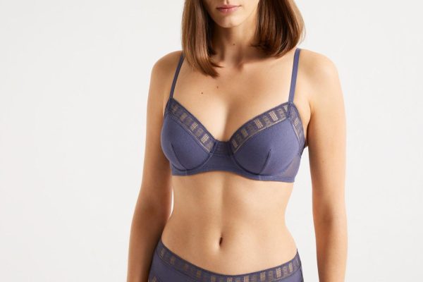 Available in sizes up to 100D, the Infime bra offers exceptional comfort and support with its full-cup shape and lined cups. It has lace edging and is made from micromodal and cotton tulle, exuding vintage charm and feminine allure.