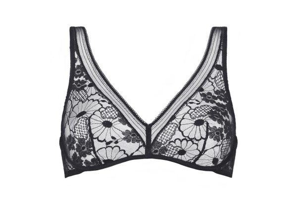 Made from stretchy Leavers lace, the underwired Millefleurs bra combines the comfort of a triangle style with the support of a moulded bra. Its archives-inspired lace creates a gorgeous floral pattern that alternates between opaqueness and sheerness.