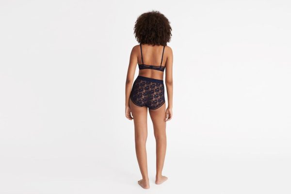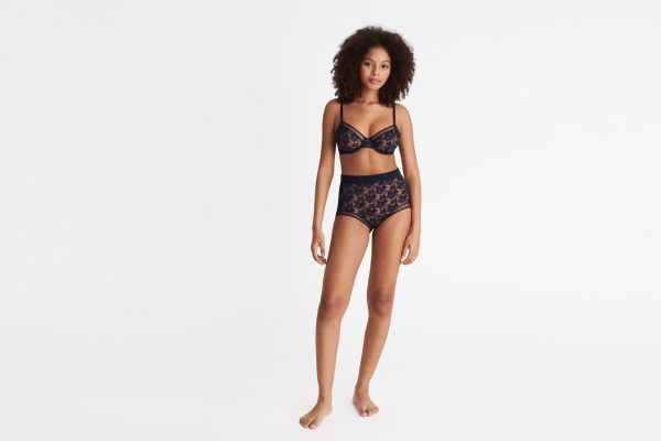 Made from stretch Leavers lace, the result of precious craftsmanship, the Paradis full-cup bra draws like a constellation on the skin through its geometric motifs. Its base construction guarantees optimum support for generous breasts, without ever compromising comfort or femininity. Delicate transparent braids emphasise the silhouette.
