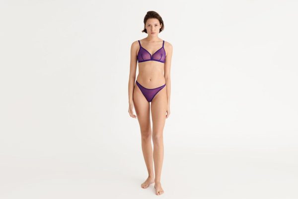 A wireless triangle bra, in stretch tulle typical of ERES, with a V-neckline, this style features straps which are adjusted at the front. Its elasticized band construction, bust darts, triangle panels on the sides and full-figure back guarantee optimum support.