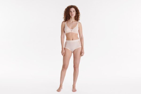 The Senteur elongated triangle bra is a new arrival at ERES. Its bagged-out neckline and lined jersey cups offer optimal support and comfort. Graphic floral lace adds a touch of femininity and elegance.