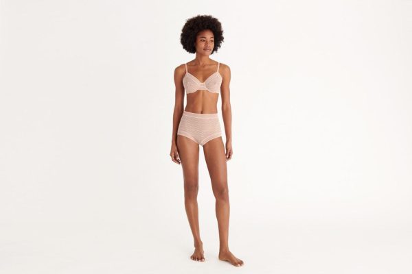 The Intention high-waisted briefs are enhanced with a feminine and comfortable thin logotype jacquard lace. The shape sculpts and enhances the body with a 70s feel.