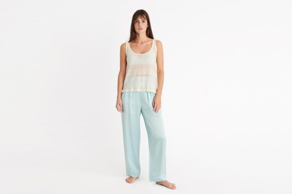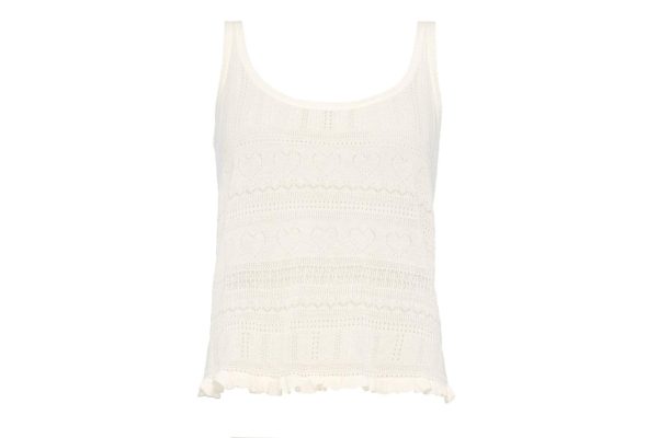 The Irène vest top is all about delicate refinement. Made from a cashmere openwork knit fabric complete with a small heart pattern, this feels as elegant and breezy as pointelle knit. The sweet ruffles on the lower hem offer an extra helping of feminine charm.