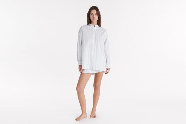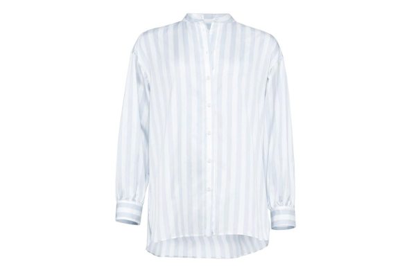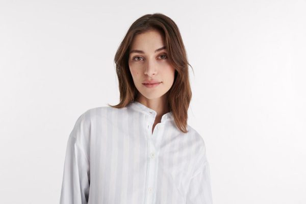 Simple yet elegant, the Vacances shirt was made for summer. In a cotton satin, it features sophisticated details like a standing collar and rounded slits at the hem.