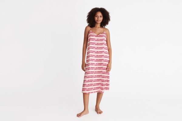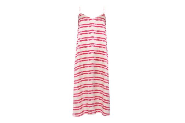The long Valentine nightie is embellished with all-over hearts in graduated rows unfolding over a delicate silk satin fabric. This incredibly feminine design stars a flowing, streamlined cut given a trend-led twist by a sweet and mellow red-and-pink love-inspired print.
