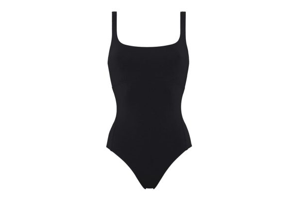 For optimum support, this tank one-piece swimsuit is lined at the top, and has underbust seams. With broad straps framing its round neckline and side seams with a sculpting effect, it is suitable for all body shapes.