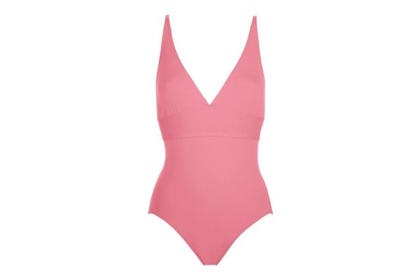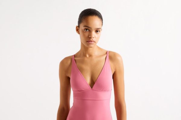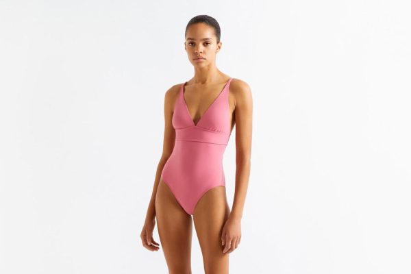 This triangle one-piece swimsuit with thin straight straps opens onto a deep, graphic and feminine V-neckline. It is suitable for all body shapes.
