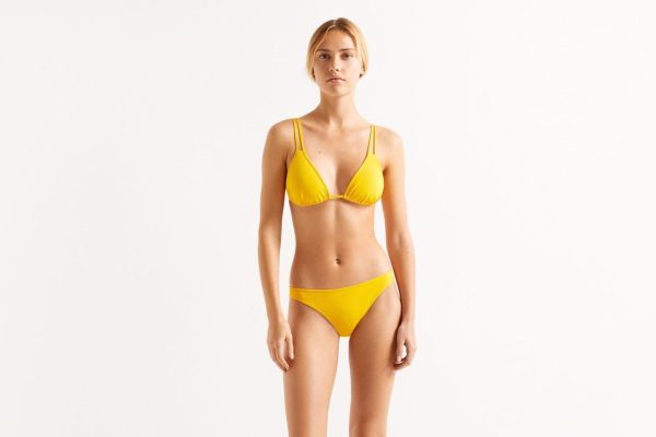 Ficus is the perfect small triangle bikini top to wear straight over the shoulders or tied around the neck. The thin double strap detail adds a modern touch to this minimalist shape, made from natural Peau Douce.