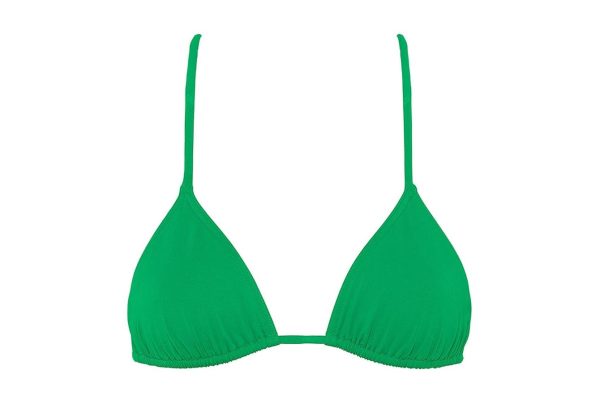 Timeless and basic, this drawstring triangle bikini top has thin straps that can be worn straight or around the neck.