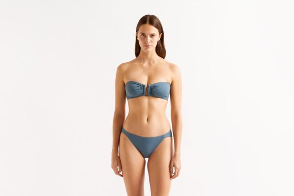 As the ultimate underwire-free bandeau bikini top with a U-shaped metal link that separates its pleated cups and side stays, this iconic style is famous for its graphic and feminine cut.