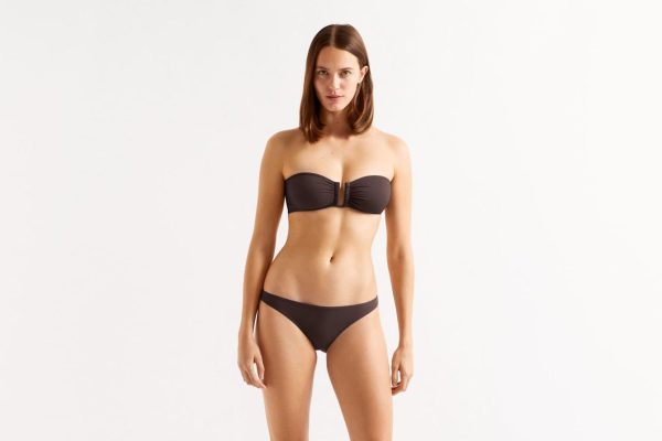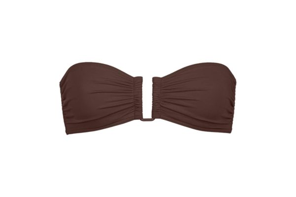 As the ultimate underwire-free bandeau bikini top with a U-shaped metal link that separates its pleated cups and side stays, this iconic style is famous for its graphic and feminine cut.
